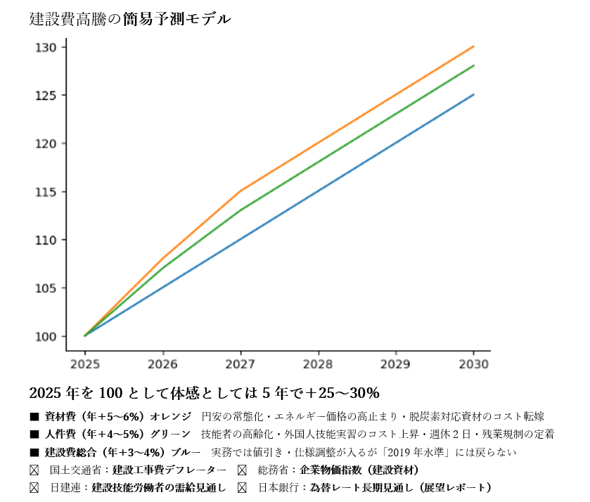 ウッドショック以降、木材・鋼材・断熱材・設備機器の価格は高止まりしている。一度上がった価格は、もはや「元に戻る」前提では語れない。