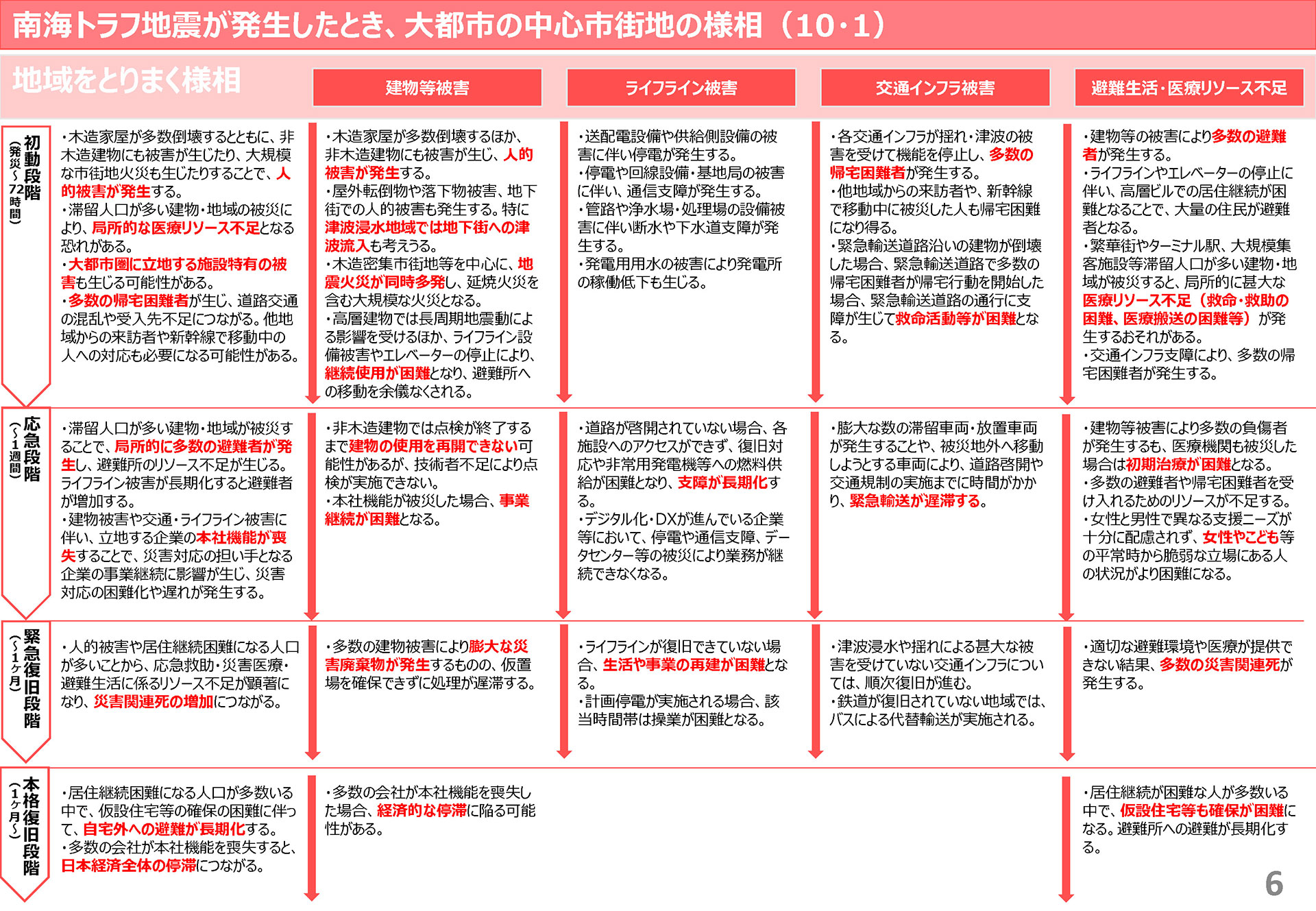 次に、「南海トラフ地震が発生したとき、大都市の中心市街地の様相」という資料がある。これは、南海トラフ巨大地震対策検討ワーキンググループが令和7年3月31日に公表した「最大クラス地震における被害様相の横断的整理」に記載されている。