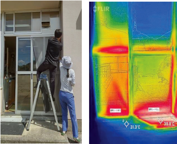 小学校では、簡易シェードを窓に設置するアイデアが採用され、