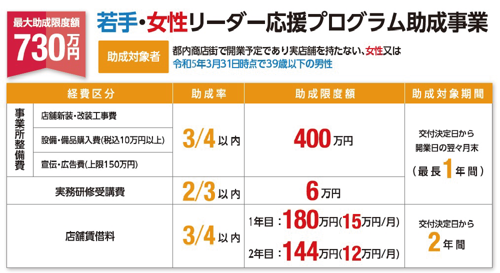「若手・女性リーダー応援プログラム助成事業」「商店街起業・承継支援事業」のエントリー開始|ニュース・トピックス より