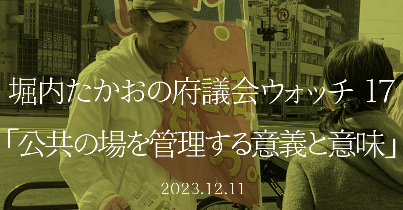 堀内たかおの府議会ウォッチ 17「公共の場を管理する意義と意味」|uco https://ucosaka.com/