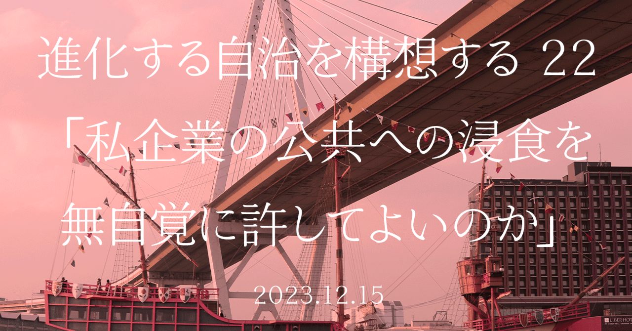 進化する自治を構想する 22「私企業の公共への浸食を無自覚に許してよいのか」|uco https://ucosaka.com/